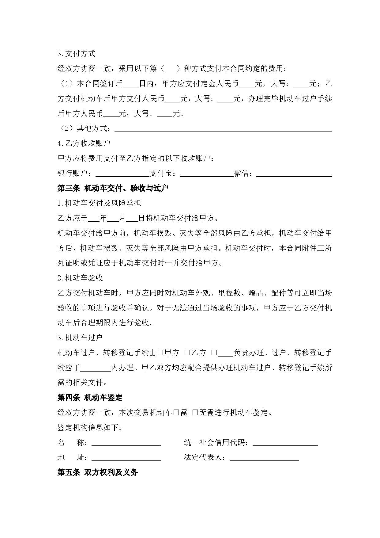 北京市二手机动车买卖合同范本协议 旧机动车辆交易模板 电子版