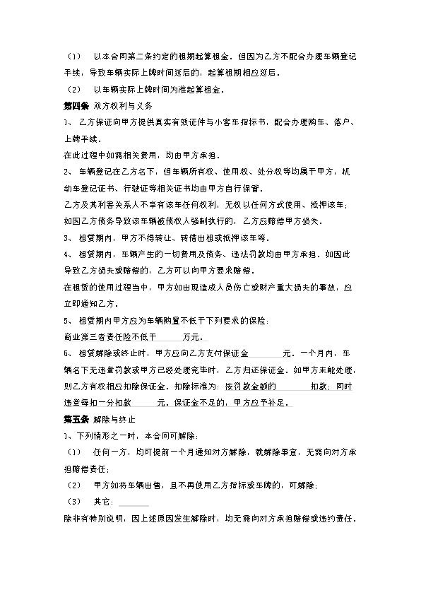 北京市车牌租赁合同 协议范文样本电子版 理论上讲车牌出租是有风险的,合同怎么写合法?长期使用协议书,京牌出租协议。
