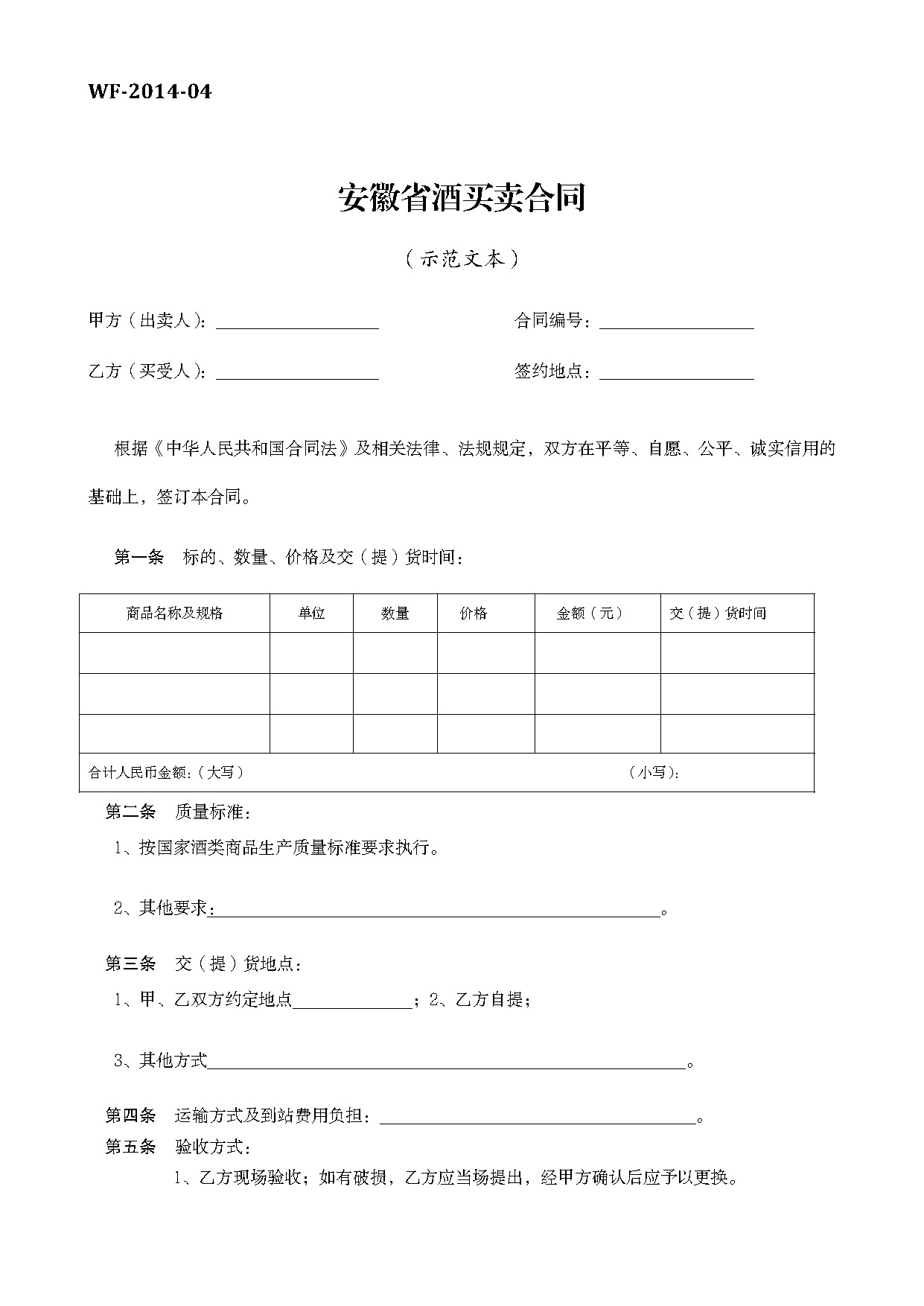 安徽省酒买卖合同